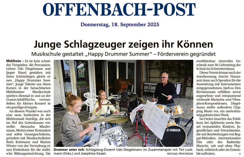 - ein einzigartiger Konzertabend, am Sonntag, dem 21. 4. 2024 im Gallus Theater in Frankfurt am Main, bei dem das Mallet Duo: Udo Diegelmann (gleichzeitig Leitung) und Mariia Shmeleva auf die Percussion Ensembles des Percussion Studio Frankfurt traf.